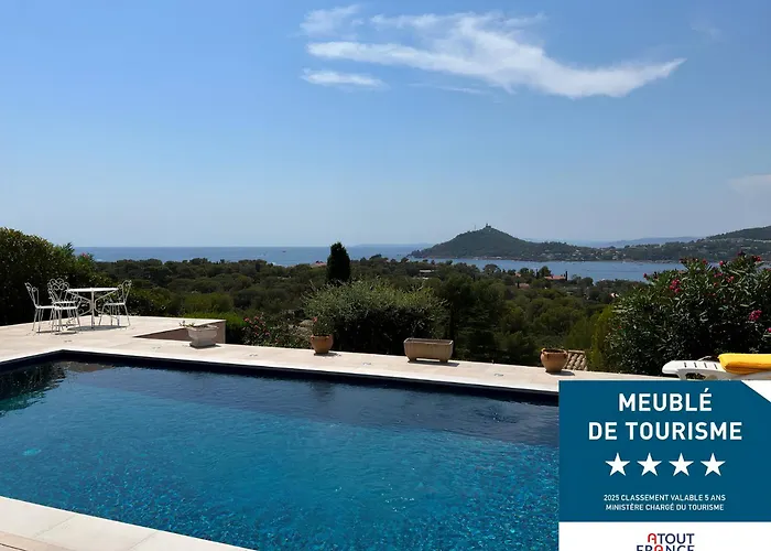 Villa 4 Etoiles A Agay - Terrasse Panoramique Vue Mer - Proximite A Pied De La Plage Saint-Raphael is situated approximately a 5-minute walk from the Plage d'Antheor, featuring such comforts as Wi-Fi and a free private car park. Located within a few blocks of the Beaumette Beach, the property boasts a terrace with views of the sea.